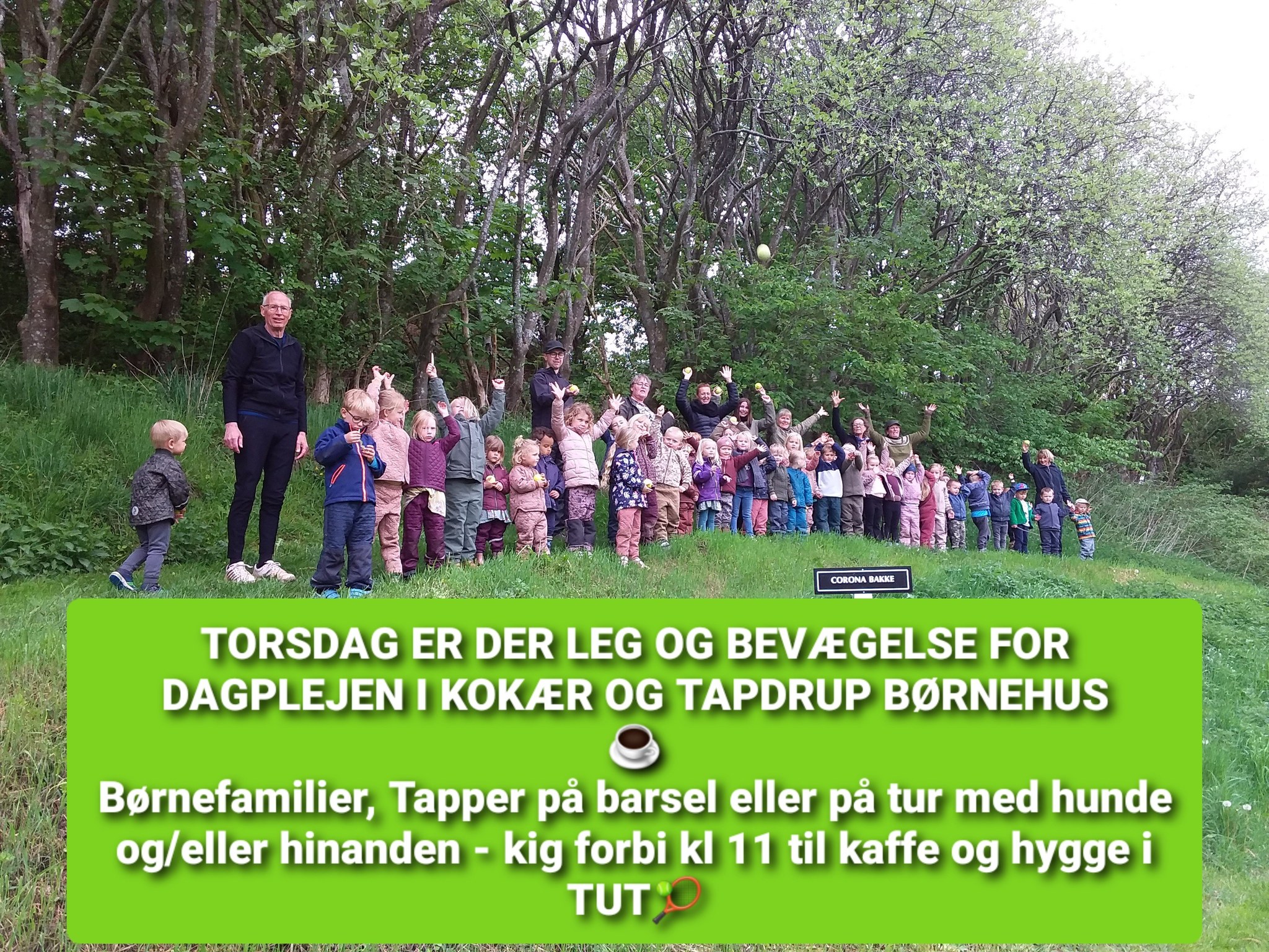 TUT tilbyder Dagplejen i Kokær at kigge forbi vore gode og spændende faciliteter på den gamle sportsplads, og hver anden uge er der ude på græsarealerne opstillet en Spiderman-bane til ære for børnene. Samme aktivitetsbane tilbydes også byens børnefamilier, som er velkomne til at kigge forbi området i løbet af ugen, herunder at gøre brug af det samme ugentlige “legetilbud” !